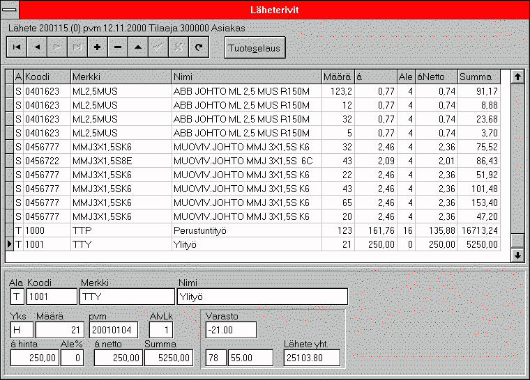 Ohjelman suunnittelu alkoi vuoden 2000 alussa ja ensimmäinen lasku tehtiin saman vuoden heinäkuussa. Siitä lähtien ohjelma on ollut Sähkölaine Oy:n laskutusohjelmana.